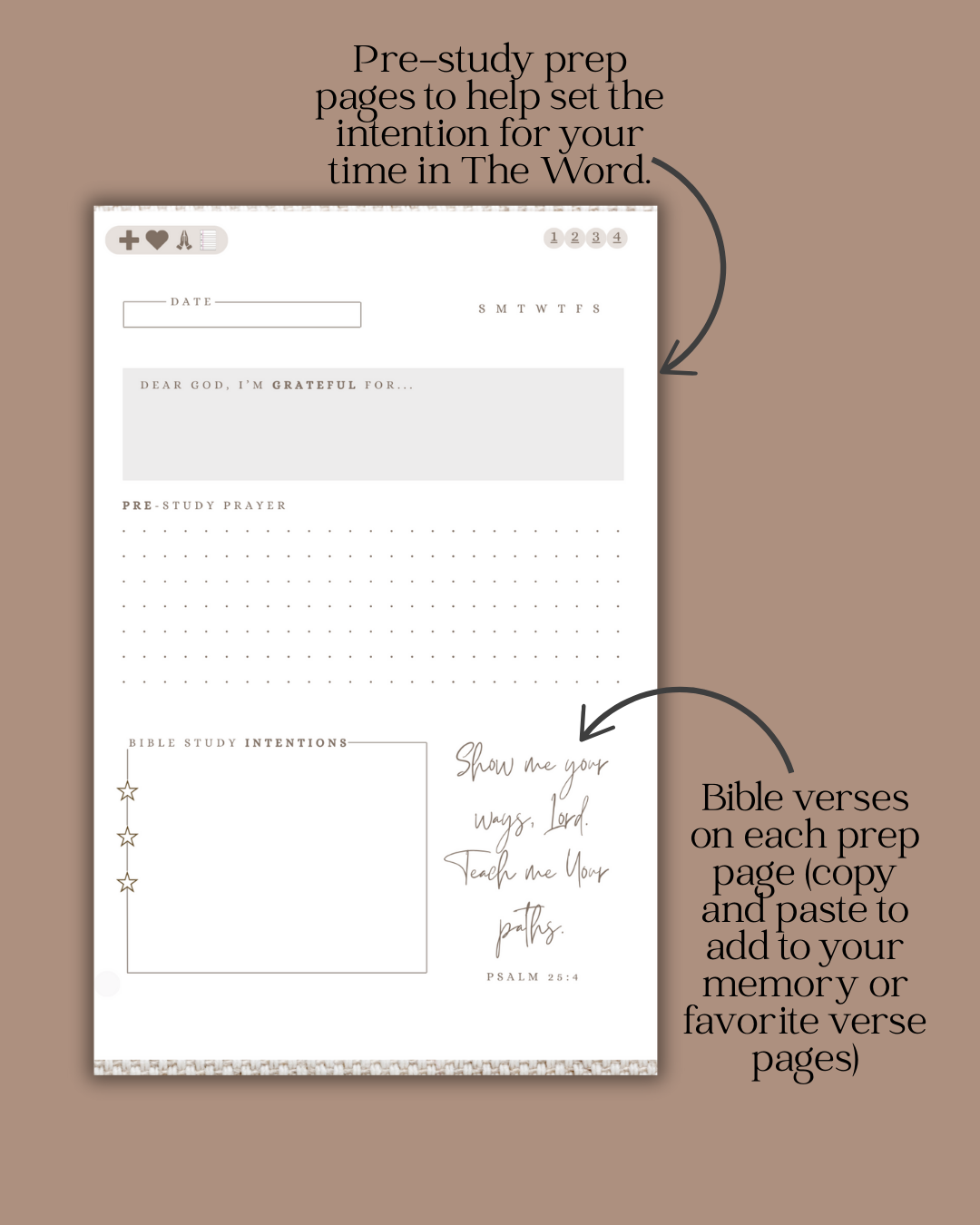 Now you can take your Bible study notes digitally! Whether you prefer studying on your iPad or tablet, the Bible Study Journal (Digital Edition) gives you the same simple, flexible layout as the physical version—just in a format that goes wherever you do. Designed for use with apps like GoodNotes, Notability, or similar PDF annotation apps, this journal makes it easy to stay organized and focused during your quiet time.