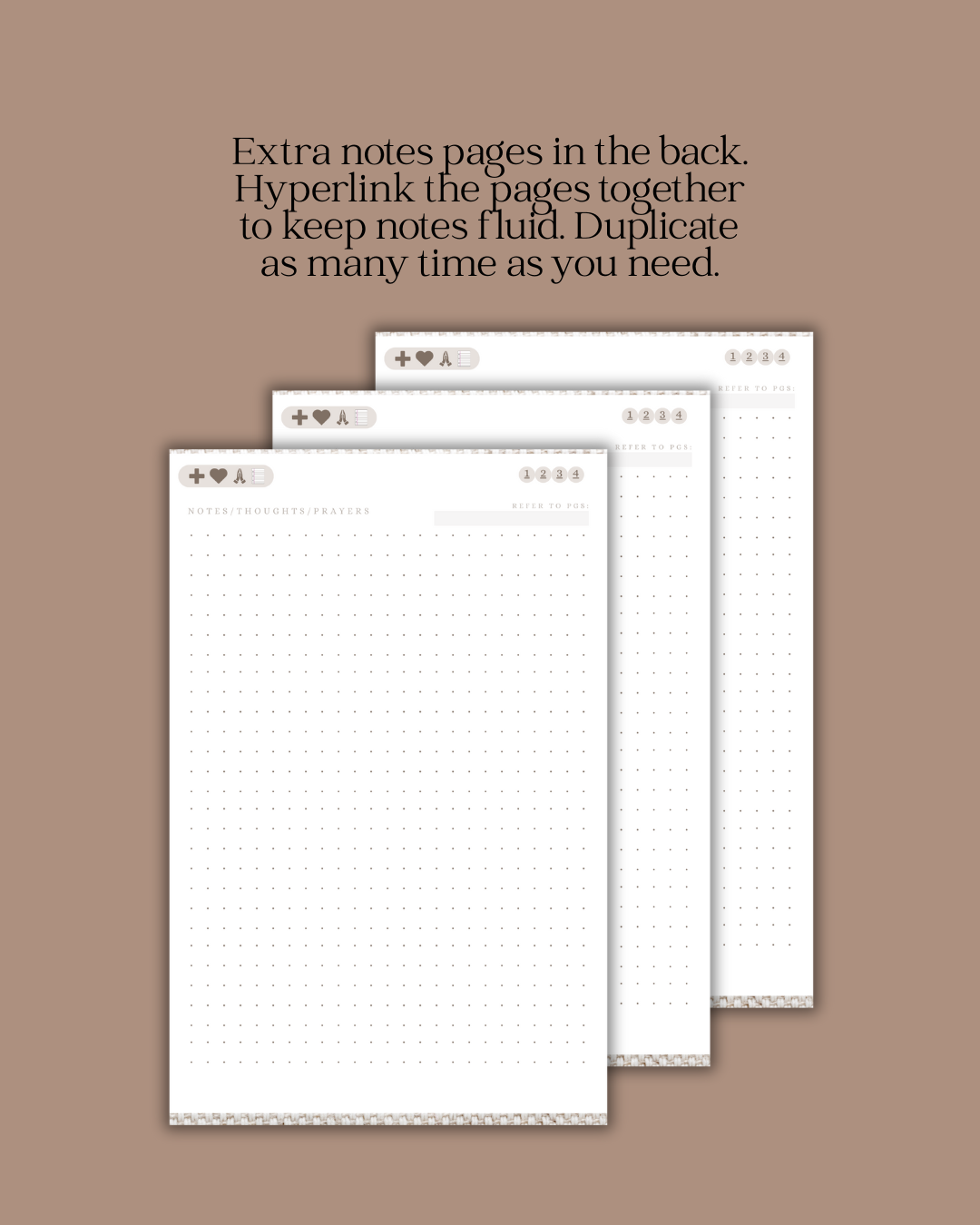Whether you're following a study plan or jotting down sermon insights, this journal meets you where you are—no pressure, just intention.